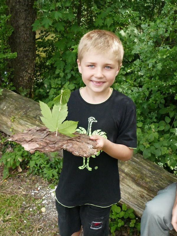 Wir bauen aus Rinde und Blättern "Wunsch"-Schiffchen