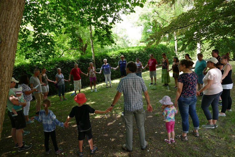 Am Kraftplatz werden Steine zum Bemalen verteilt