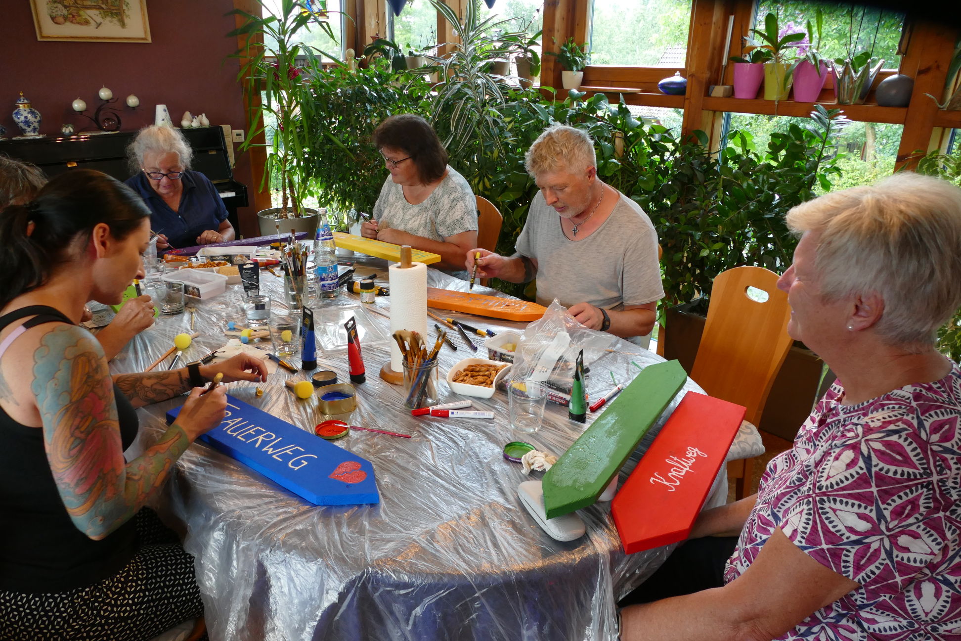 Am 7. August 2024 trafen wir uns bei Eleonore zum Gestalten von Wegweisern.