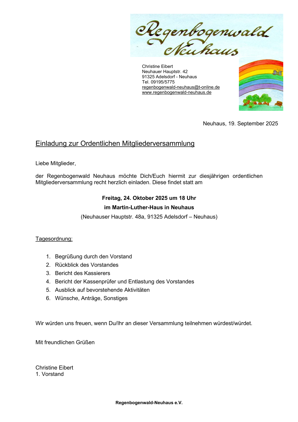 Übersicht Termine und Aktivitäten 2025 Regenbogenwald Neuhaus e.V.: