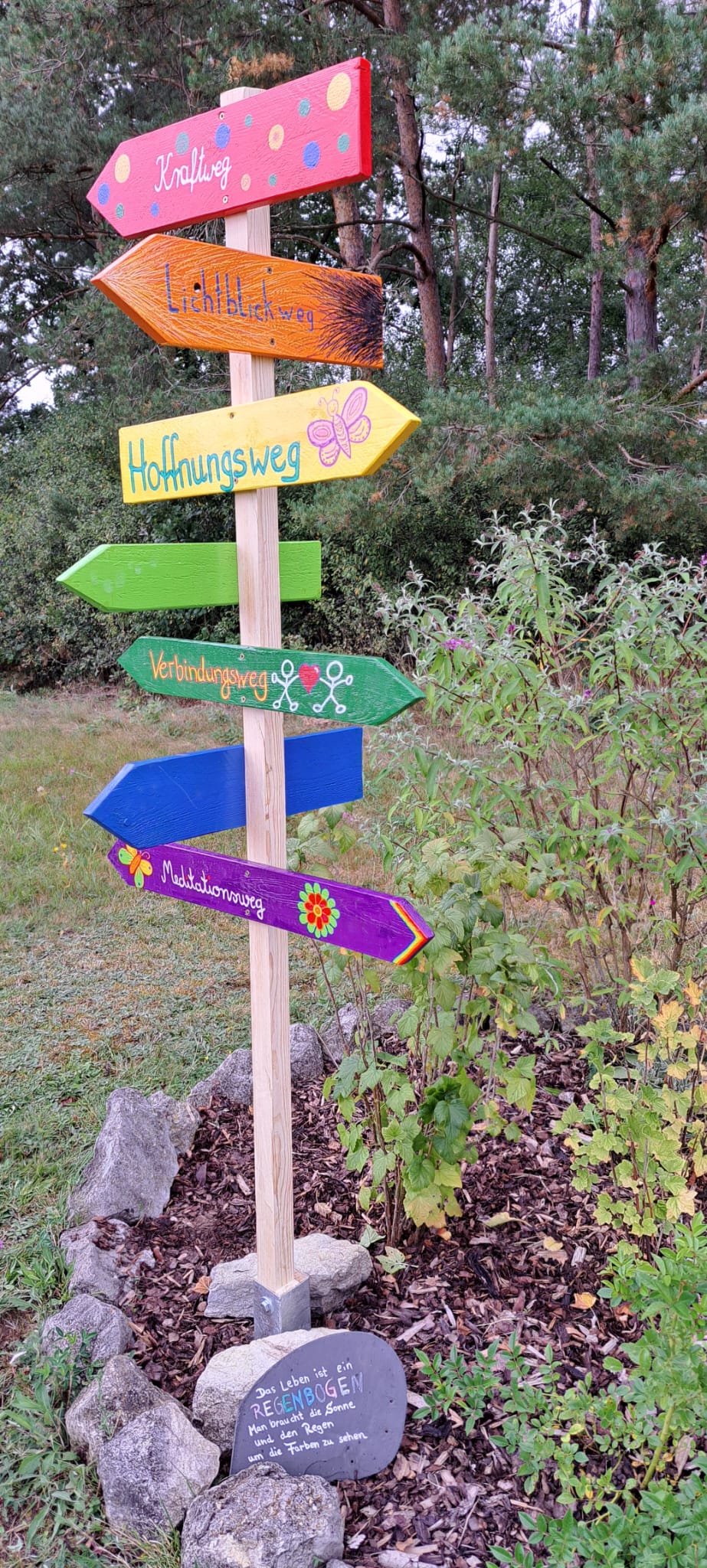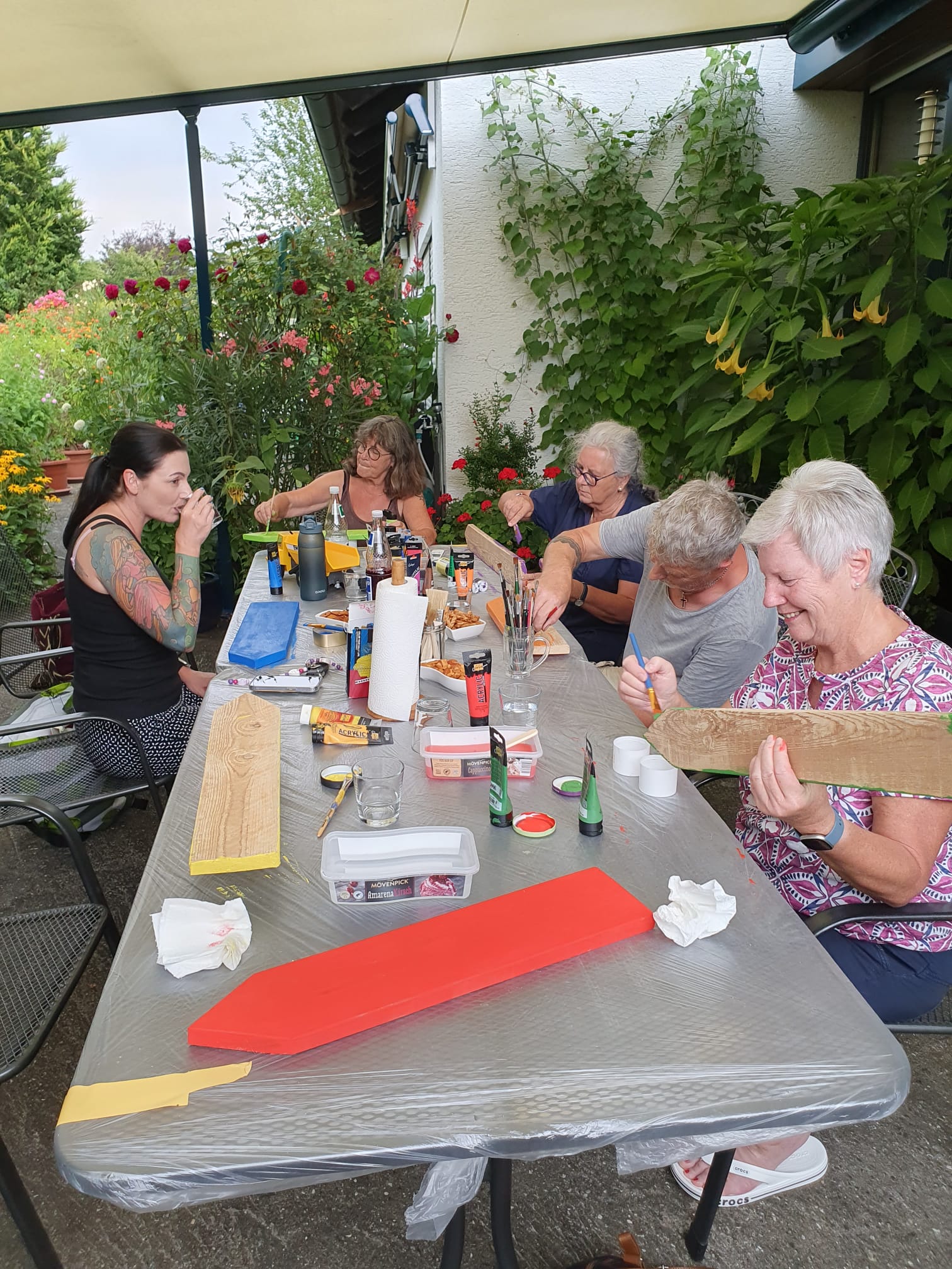 Am 7. August 2024 trafen wir uns bei Eleonore zum Gestalten von Wegweisern.